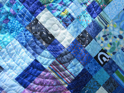 Even though it takes more time to piece a quilt back, I am always happy to use up fabrics for a scrappy backing, which seemed appropriate for this scrap quilt.