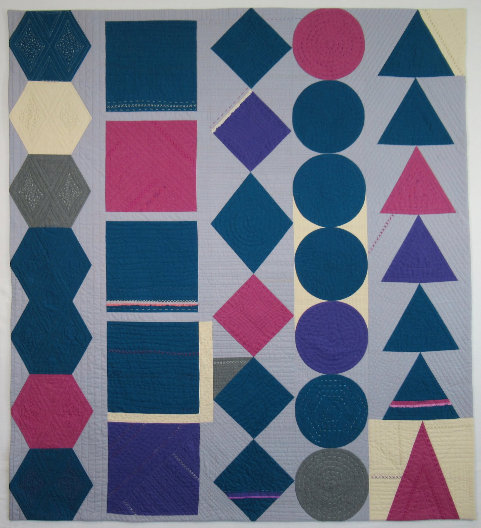 I'm looking forward to trying these rulers, particularly the ultra-curvy one called "Lotus Lines" (bottom center). It's meant to be used to "steer" a quilt around particular shapes (appliqué for Bethanne), and do something with the concave part of the ruler that she calls "needle entrapment." It's new to me.