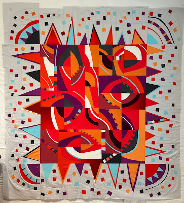 And 4.27 yards was used to piece the backing for it that includes orphan blocks and discarded quilt design ideas. If this picture looks like a pin-basted quilt on my design wall, it is! I forgot to take a picture of the backing before I'd made the quilt sandwich.